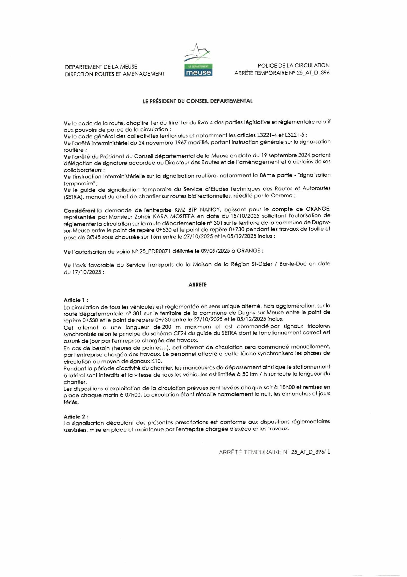 Arrêté préfectoral circulation alternée sur une portion de la D301