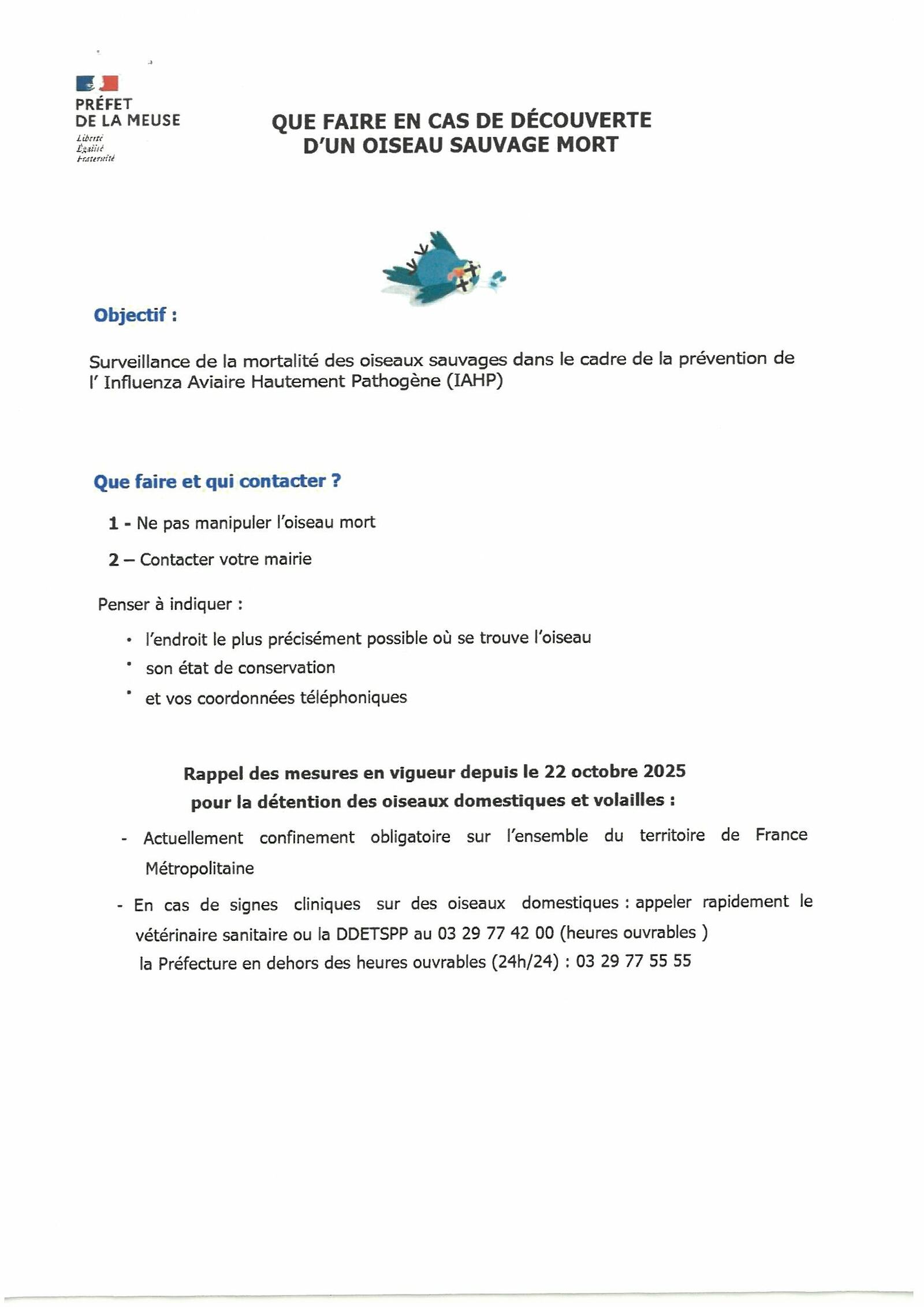 Que faire en cas de découverte d'un oiseau sauvage mort?